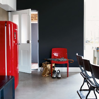 I just looove converted spaces! Tucked somewhere in the Bastille district in Paris, this flat was once a workshop. I adore the exposed brick wall-- both raw and painted, the rusty metal staircase with perforated sheets... Just about everything! I could go on and on. The best part is the mix of glossy and rough finishes.